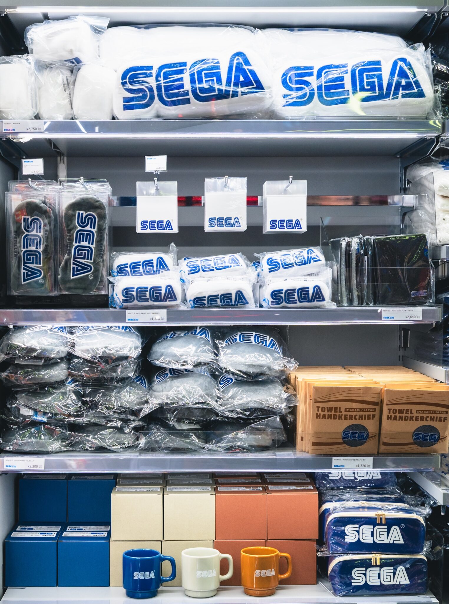 海外から訪れる人のお土産として人気なのが、セガの企業ロゴをあしらったグッズたち。アパレルやライフスタイルグッズなど、多彩なラインナップです。