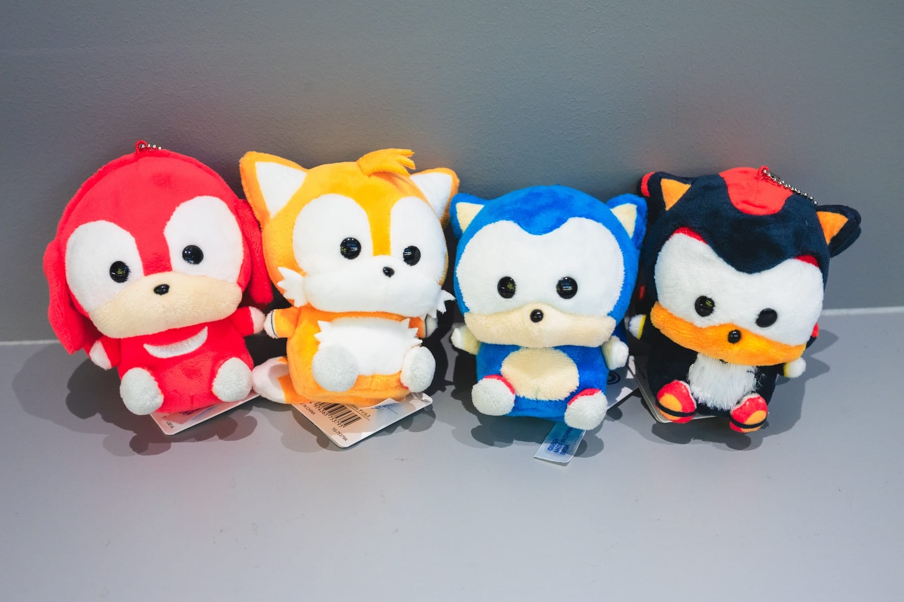 セガストア限定販売のぬいぐるみシリーズ(右から)シャドウ、ソニック、テイルス、ナックルズ。SEGA Cooro™/各1,800円。