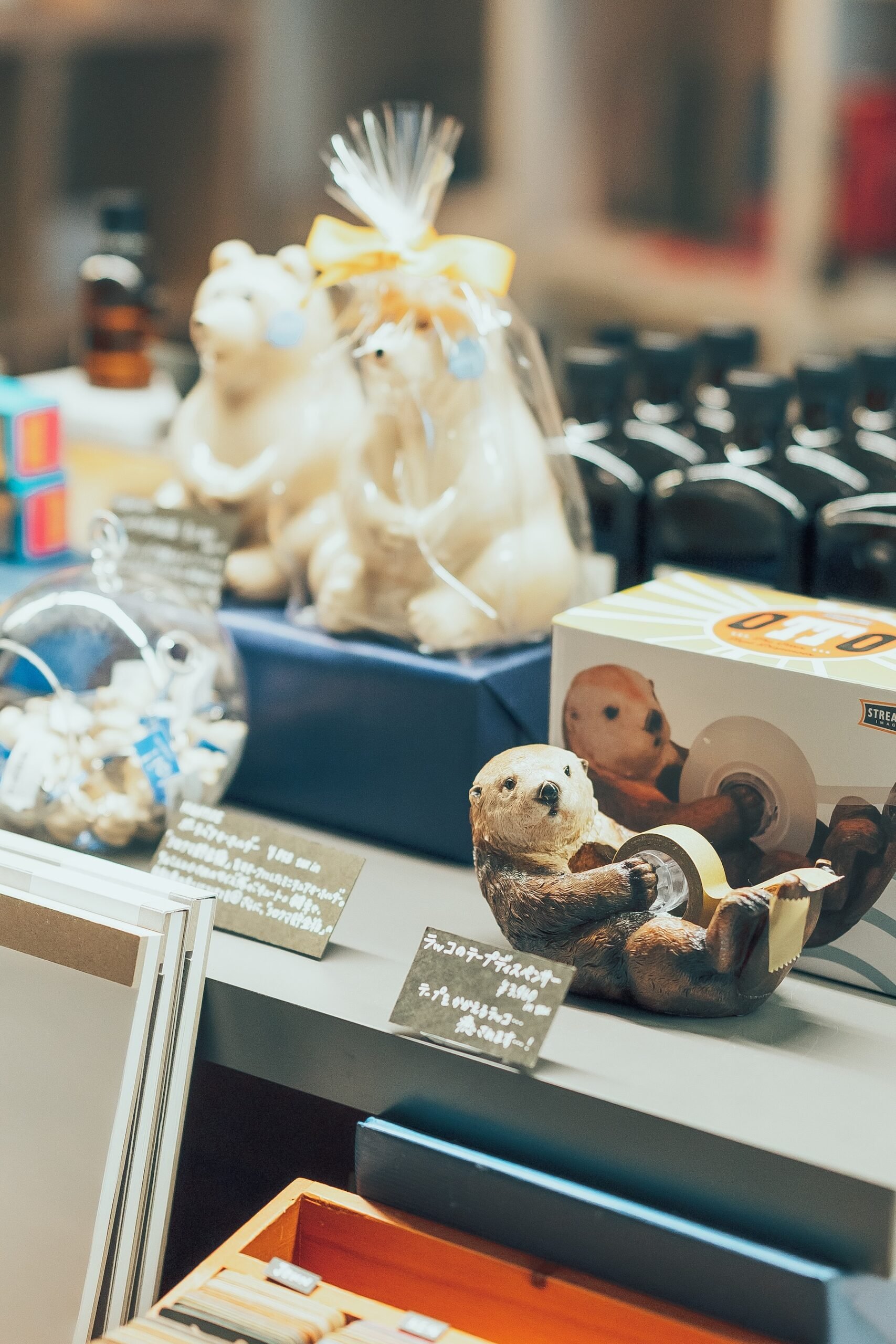 アパレルや雑貨も「編集視点」でセレクト。本のそばにある暮らしをまるごと編集する、それが『SPBS本店』の根底にある考え方なのです。たとえば、左利き用の道具(現在は取扱い終了)や「ラッコがテープを抱える」ユーモラスなテープディスペンサー。渋谷土産として人気のハチ公モチーフのオリジナルステッカーや、革小物ブランド「REEL」とのコラボ商品と、日常に小さな驚きや発見を与えるアイテムが揃います。