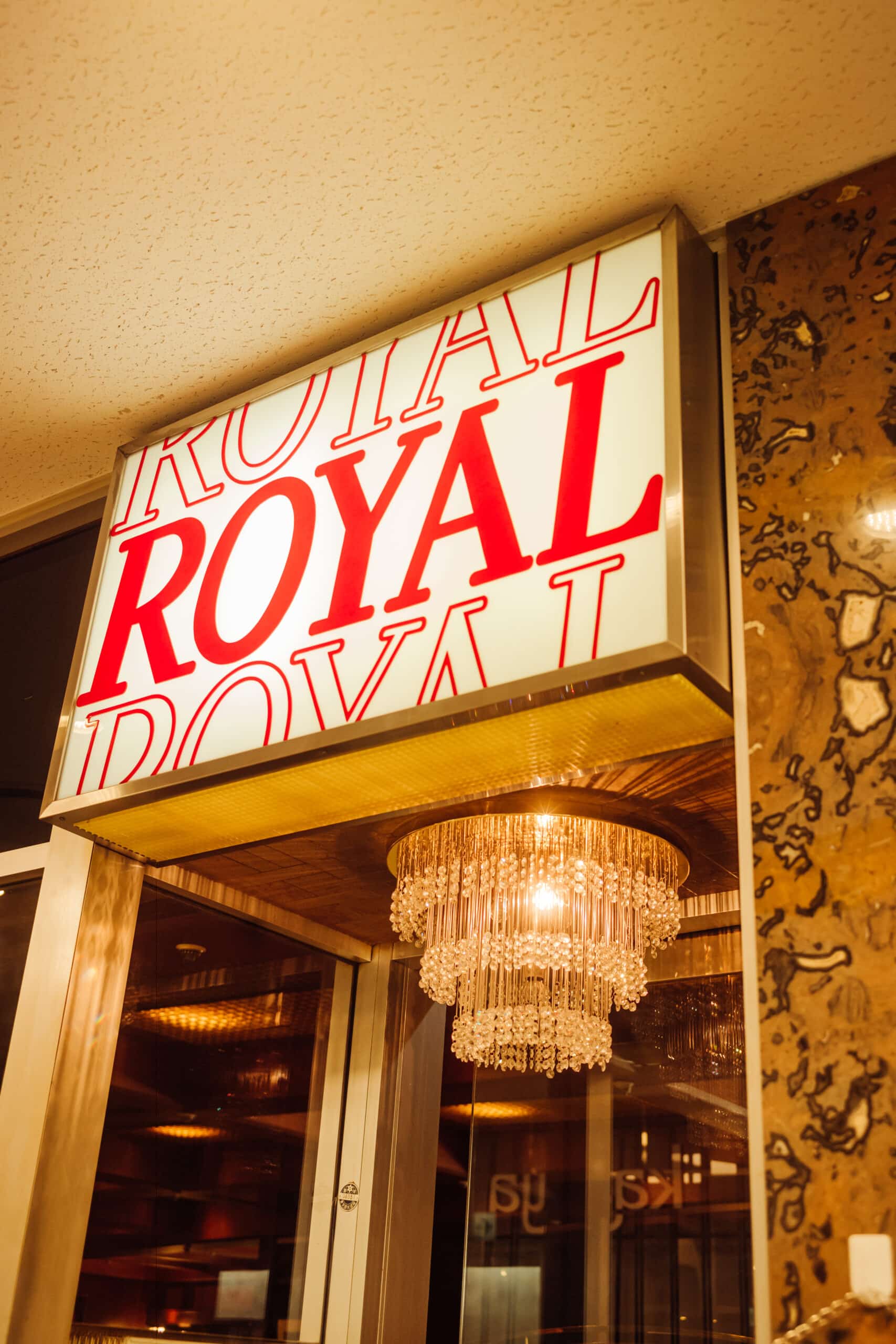 側面入口にかかるシャンデリア。開業時より変わらない『ローヤル』のロゴは今見てもポップでおしゃれ。