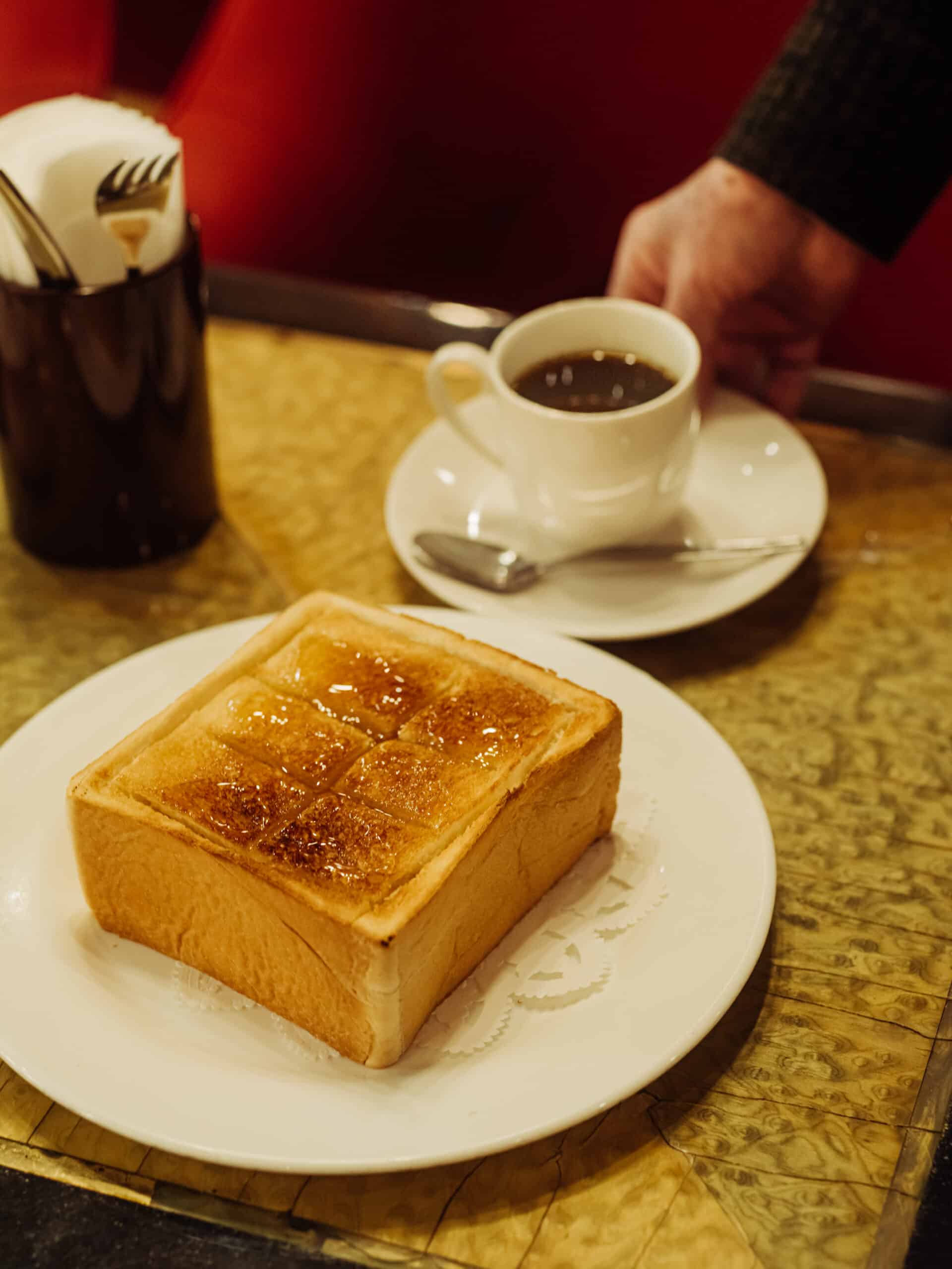 パフェと並ぶ人気メニューの「ハニートースト」は、5cmほどはあろうかという厚みがポイント。はちみつもたっぷりかかっており、大満足間違いなしの一品。ドリップ式で淹れられるコーヒーにもよく合います。ハニートースト 750円、ブレンドコーヒー 700円