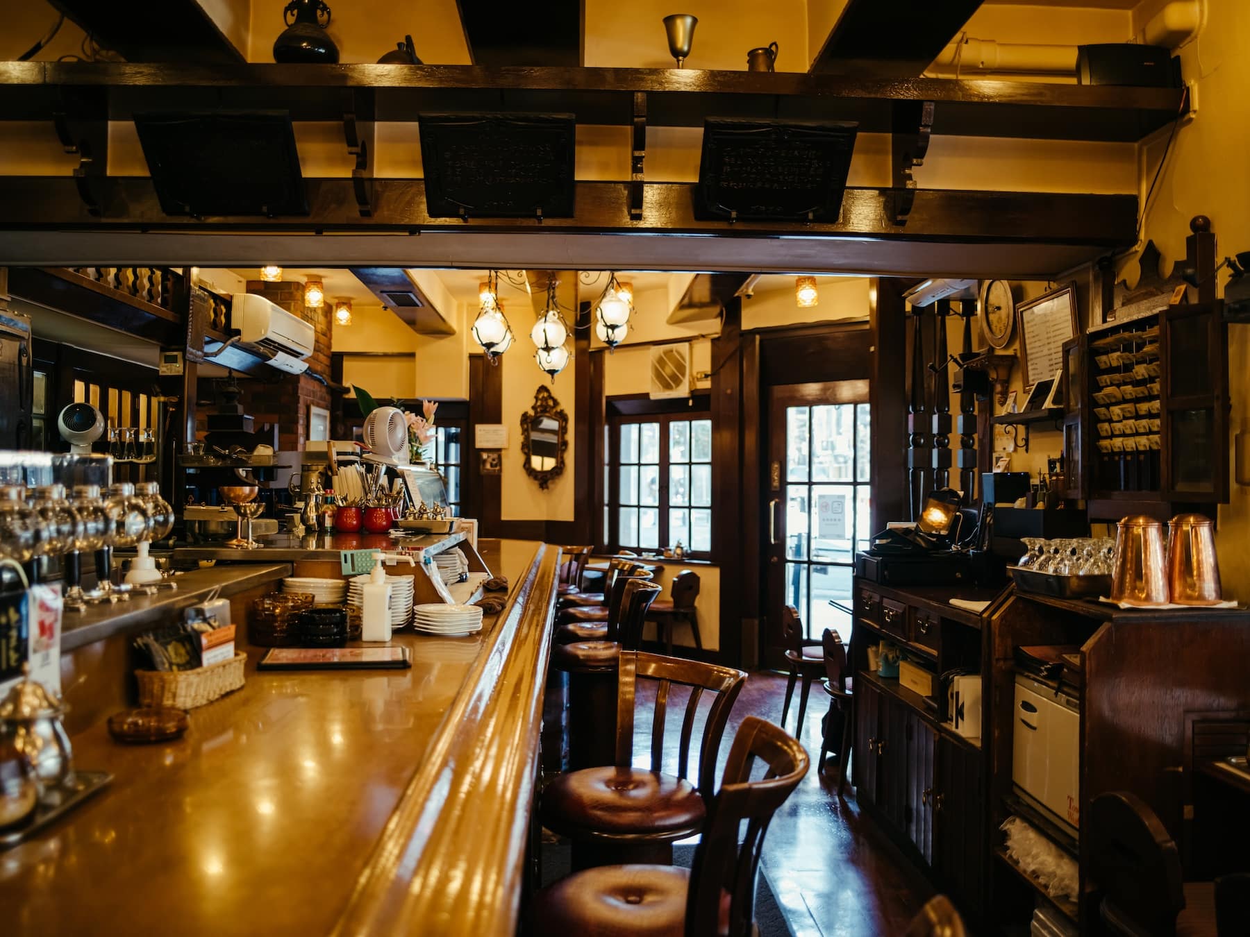 1972年創業の『和蘭豆(ランズ)』は、銀座の街とともに歩んできた老舗喫茶店。昭和の香り漂う重厚な内装と、大きな窓から望む街角の風景が魅力です。ネルドリップで丁寧に淹れるモカ豆の特製アイスコーヒーや、目の前で楽しめるサイフォン式のホットコーヒーなど、手間と美意識が詰まった一杯が味わえます。