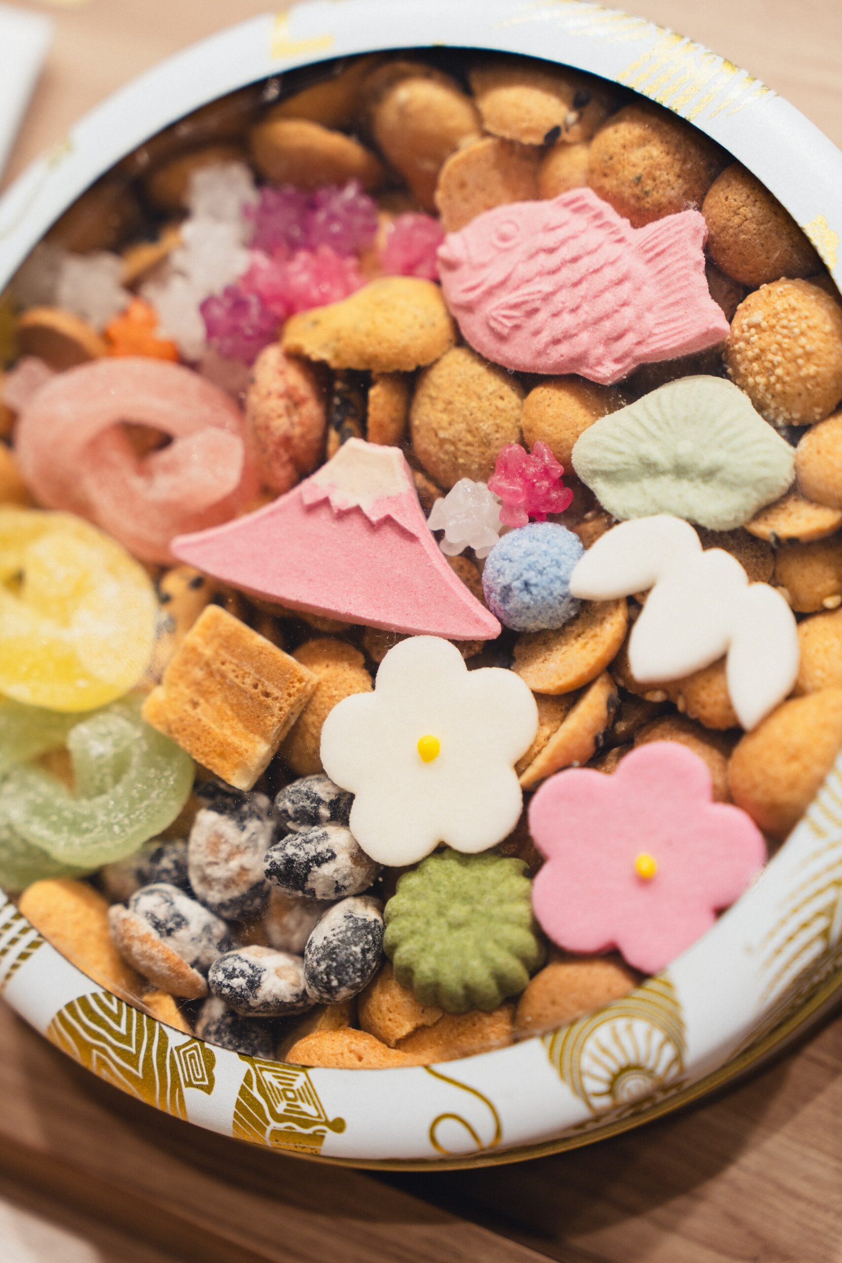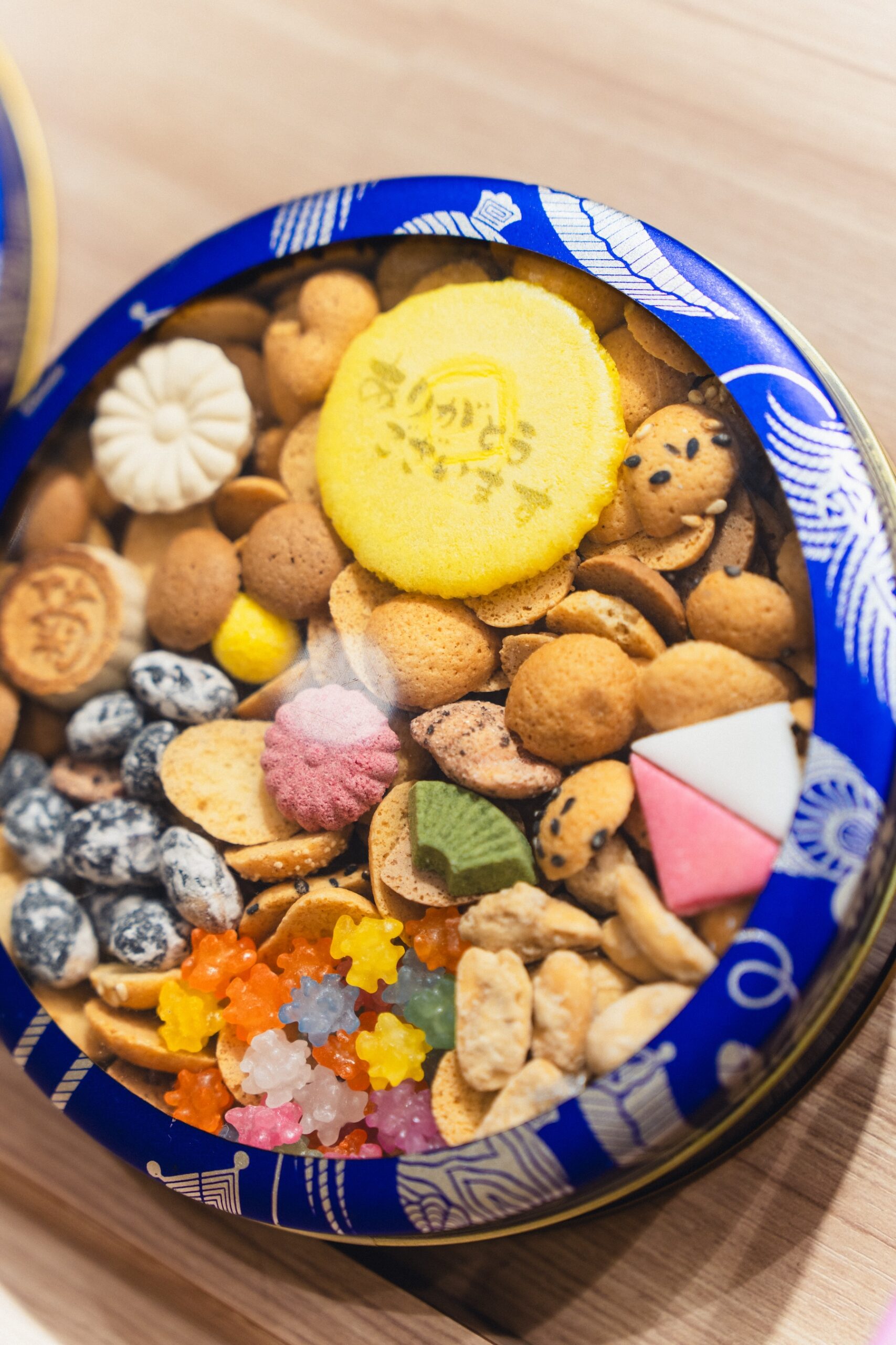 缶の底には、バターを使用せず小麦粉と砂糖と卵のみで作られた和風クッキーが敷き詰められており、その上に金平糖や和三盆、落雁、打ち物などの干菓子が20数種類以上詰まっています。富士山や四季を表現した日本らしいデザインのため、海外の友人への手土産にも人気なのだとか。店の創業135周年記念では、現代風にデザインした限定缶を販売するなど、時代に合わせた変化も取り入れています。