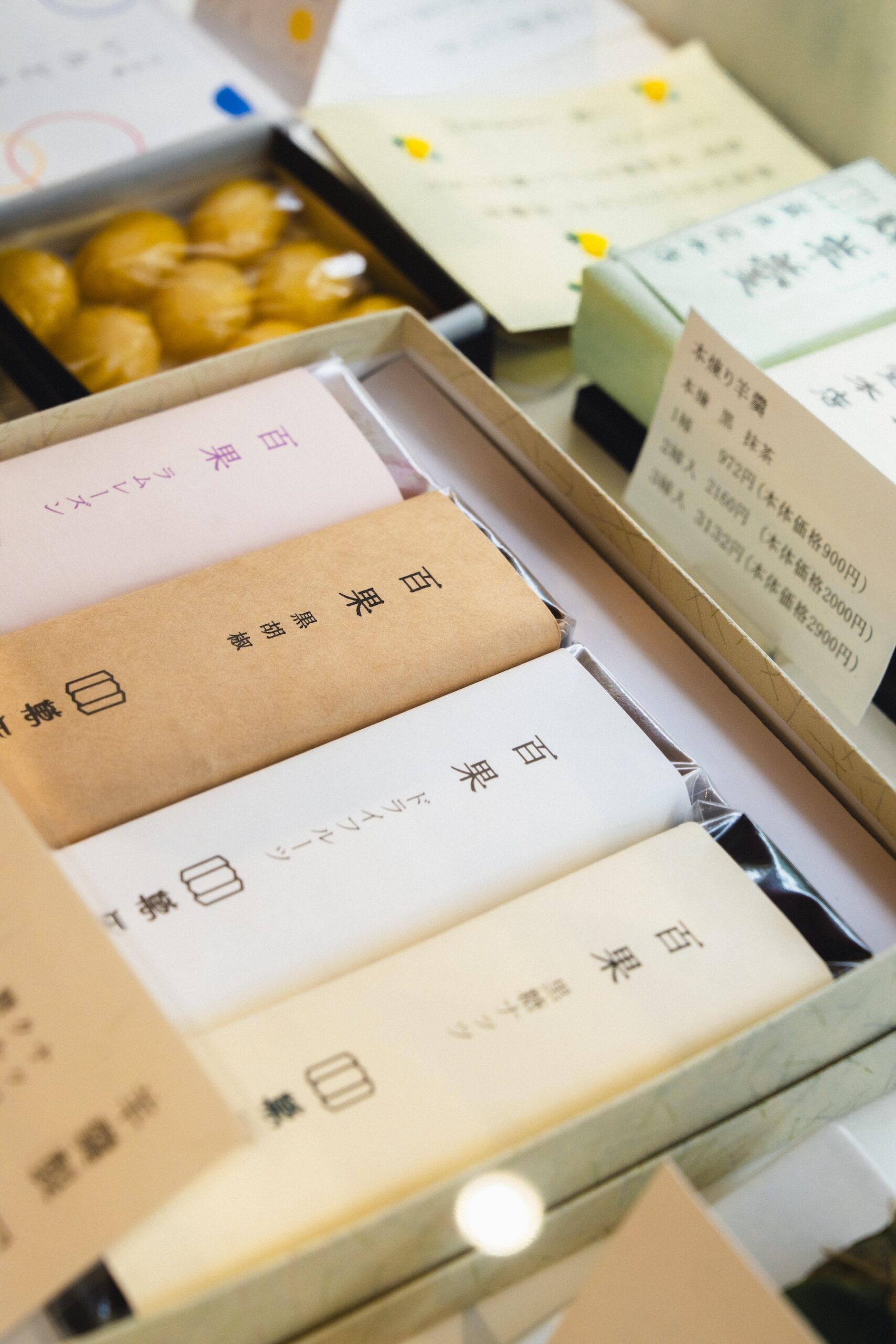 百果シリーズは、大人な味わいのラムレーズン羊羹や、甘さの中にピリッとした刺激のある黒胡椒羊羹など個性豊かなラインナップ。