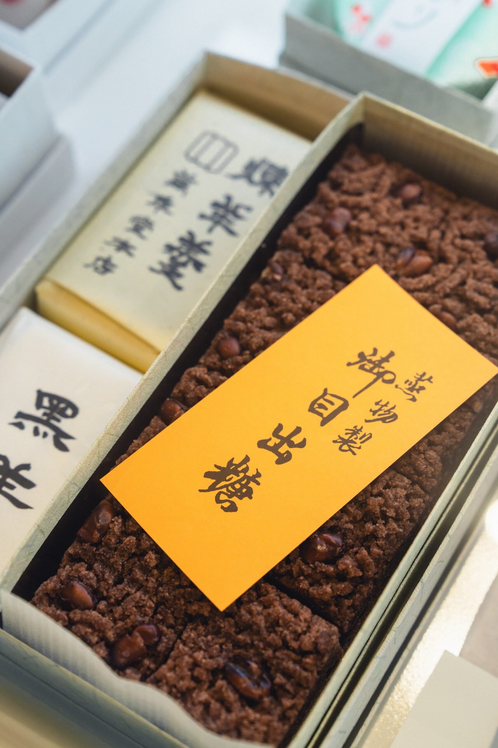 『萬年堂本店』の看板菓子といえば、縁起の良いネーミングが印象的な「御目出糖(おめでとう)」。元禄時代から店に伝わる「高麗餅仕様書」によって製造されていた高麗餅(こうらいもち)というお菓子が、お祝い事で食べられる赤飯のような見た目をしていたことから、明治中頃に「御目出糖」と名付けられました。小豆餡に餅粉、米粉などを混ぜてそぼろ状にし、大納言小豆の蜜漬けを散らして蒸し上げた御目出糖は、もちもちとした独特の食感と、小豆の風味を感じられる唯一無二の味わい。その名前の通り、誕生から100年以上にわたり、祝儀・引き出物に愛用されているおめでたい銘菓です。