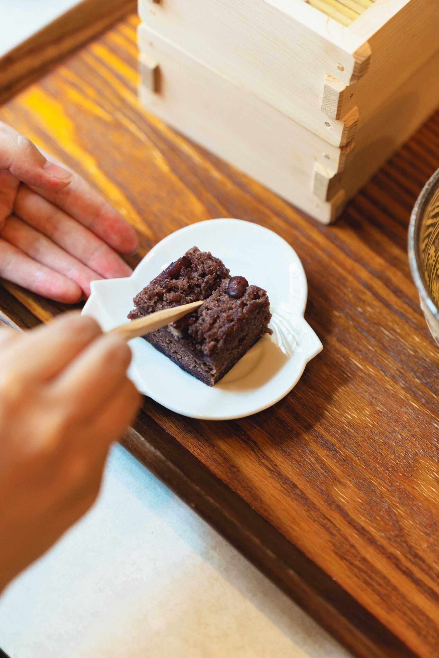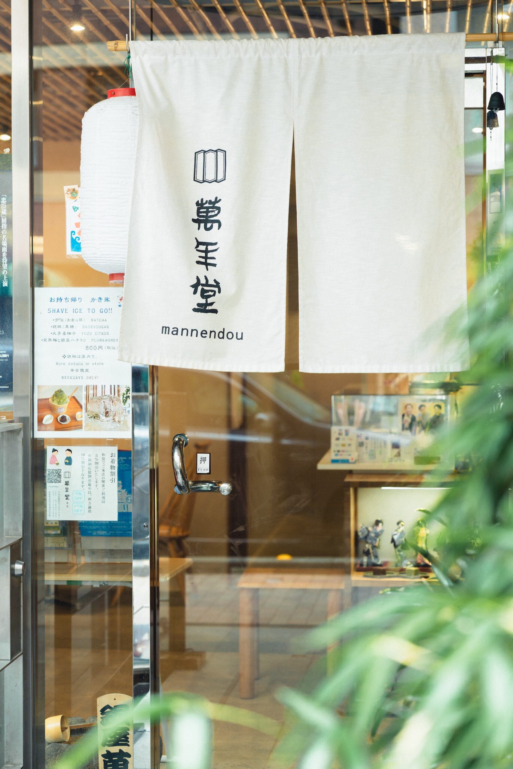 「和菓子をできるだけ作りたてに近い状態で食べてほしい」という13代目の想いから、2022年に喫茶併設の店舗へとリニューアルした『萬年堂本店』。銘菓の「御目出糖」は蒸篭に入った状態で提供され、蒸したてのような食感で味わえるのは、この店舗ならではです。また、煉りたてあん蕨餅(わらびもち)、生菓子とお抹茶のコースなど、ここでしか味わえないメニューも多数。銀座で本格的な宇治抹茶を味わえるのも、貴重な体験です。夏季には、自社農園で栽培した柚子や梅から作る自家製シロップのかき氷を求めて、連日たくさんの人が訪れます。
