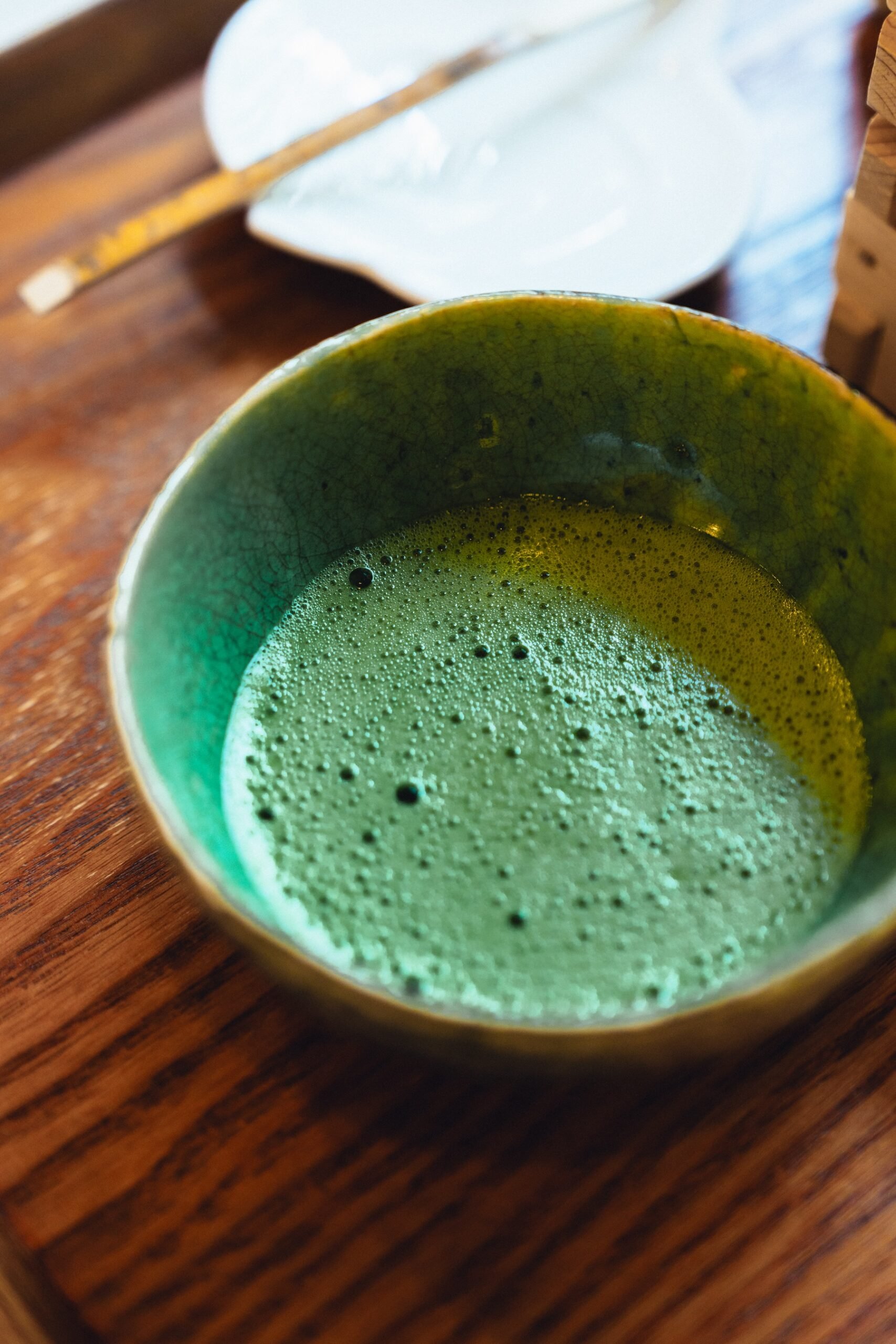 生菓子とお抹茶のコースでは、二膳目にお茶請けとほうじ茶が提供されます。最後までお茶の風味を楽しめる、満足感のある締めくくりです。
