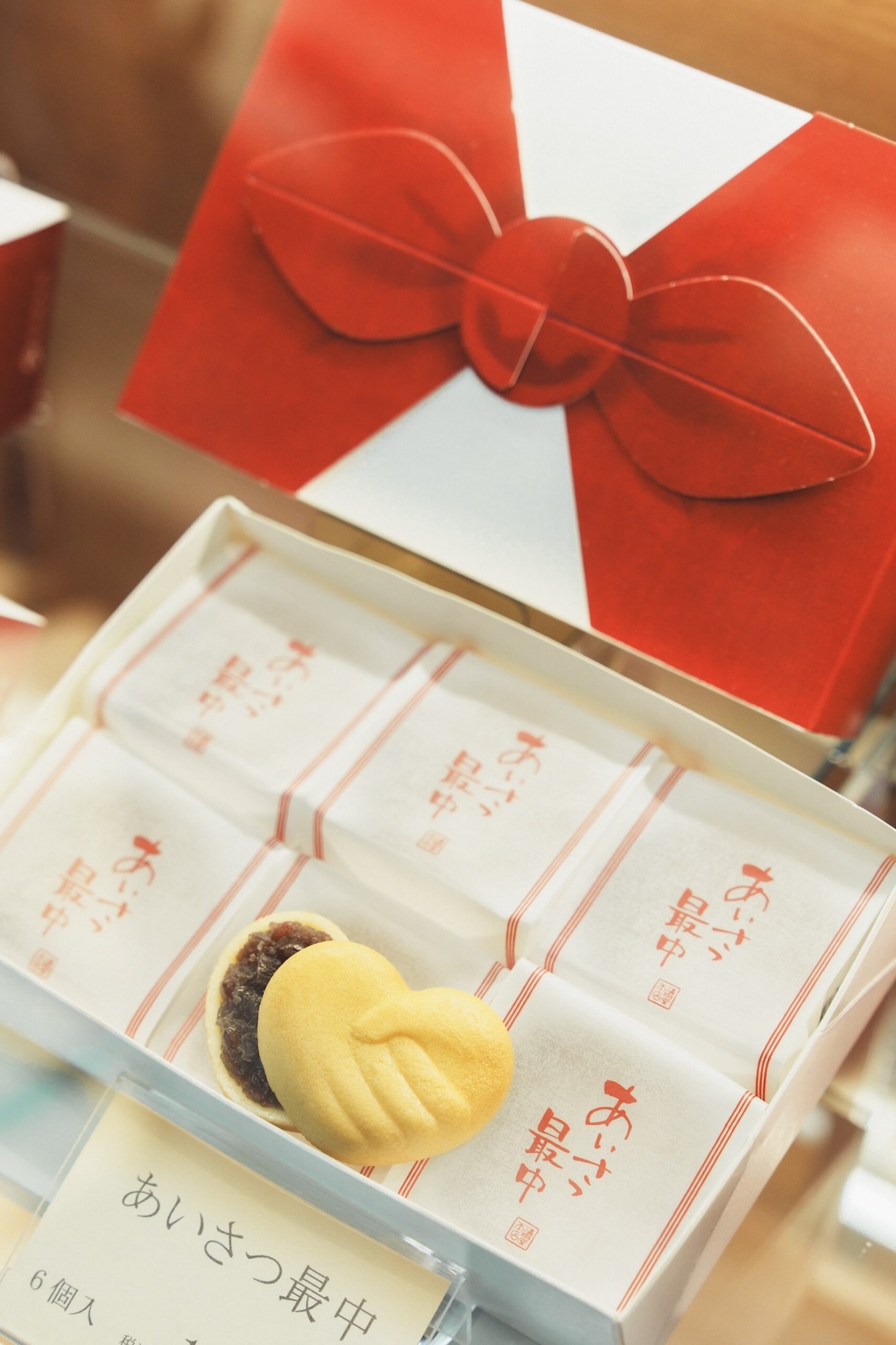 「あいさつ最中」というネーミングや、ハートの中で手と手をつなぐデザインなど贈る人の気持ちが一目で伝わるよう工夫したことで、春先や年始など季節の節目に親しまれる和菓子となっています。