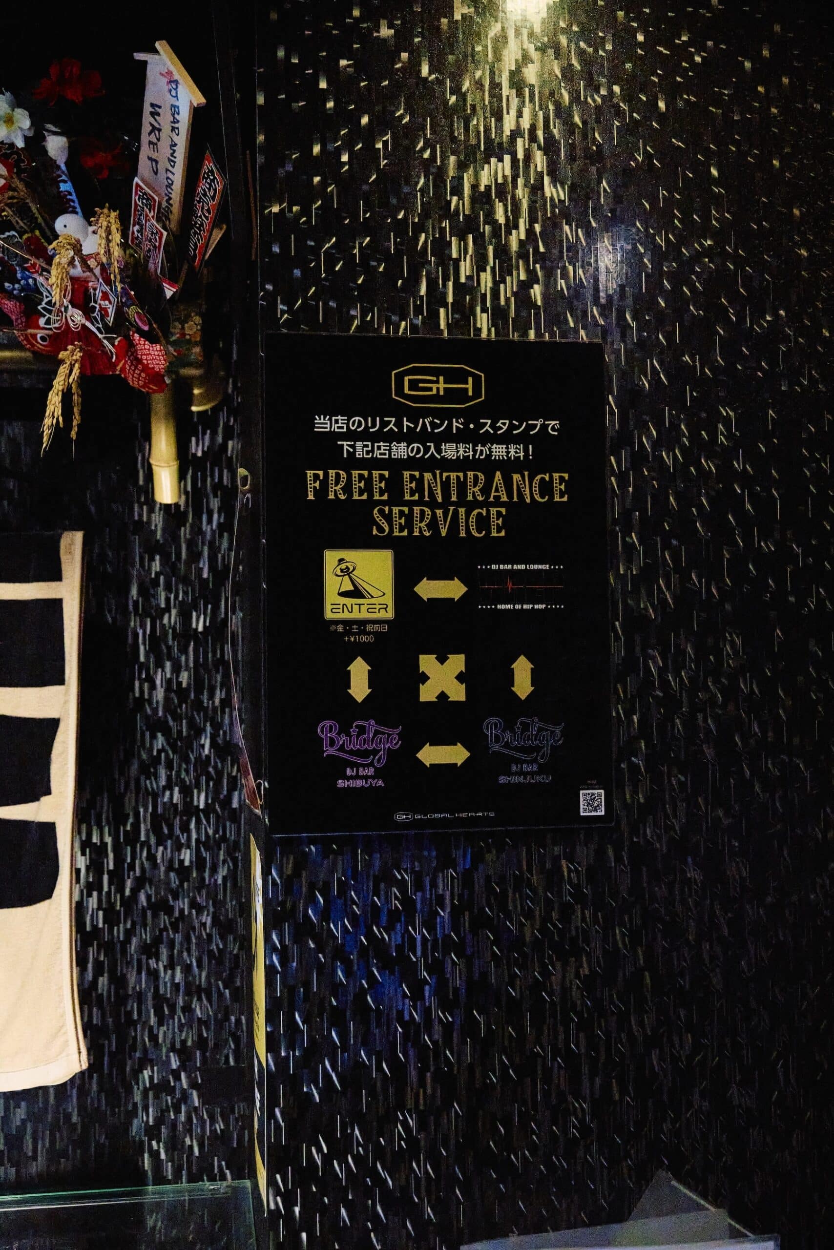 また、エントランスフィーを支払えば、同じビルの上階にあるダンスミュージックを中心とした『DJ Bar Bridge Shibuya』をはじめ、新宿三丁目にある『DJ Bar Bridge Shinjuku』、さらには渋谷と原宿の間にある『ENTER』といった系列店を周遊できる特典付き(店舗によって差額がある場合は、その分だけ追加で支払うシステム)。どの店も、平日、週末を問わずナイスなDJが揃っているので、質の高いパーティを楽しむことができます。『DJ Bar & Lounge WREP』を起点に、東京のナイトライフをぜひ体験してみてください。