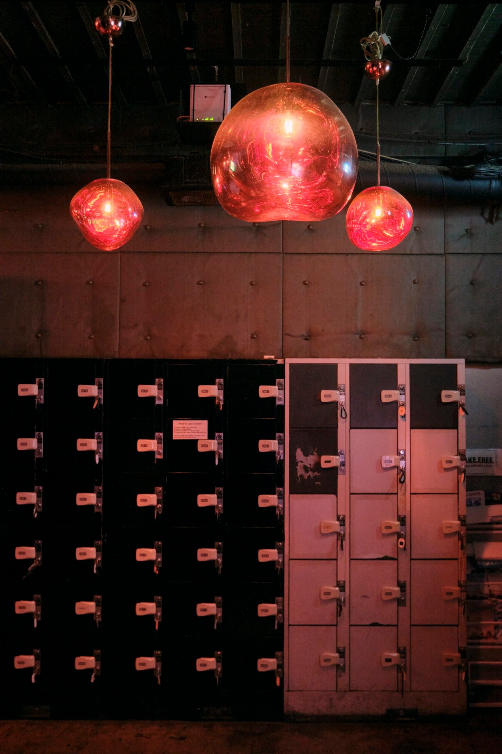 コンクリート打ちっぱなしの建物が魅力の『WOMB』ですが、内装はオープンした25年前から変わらぬ部分が多く残ることから、重厚感のある無機質な格好よさと、ちょっぴりレトロでアナログ感が交差する空間が長く続いている秘訣でもあります。エントランスから上階まであがる階段までの通路には、ひとつずつ異なるデザインをした温かみのあるライトが天井から吊り下がり、4階まであがる螺旋階段は、今やクラブの特徴のひとつとして知られています。