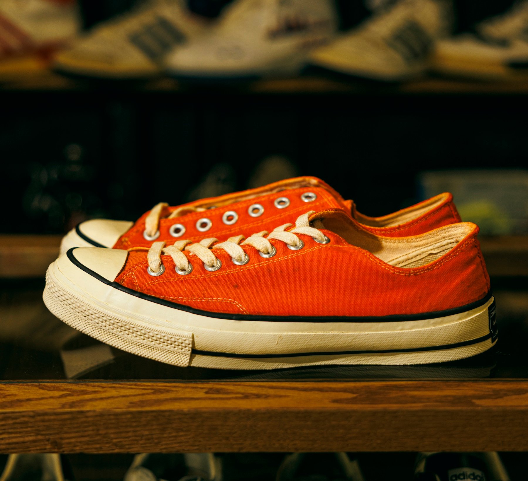 ヴィンテージの『コンバース』は、現行品にはない珍しい色が豊富。通称『チャックテーラー』と呼ばれている『オールスター』がずらり。 70年代製の『コンバース オールスター』 198,000円 ※完売
