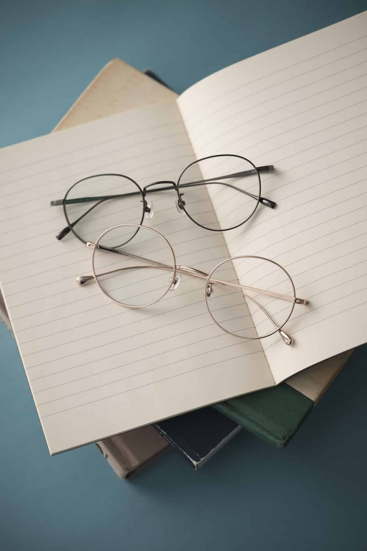 細くてスタイリッシュなデザインのチタンシリーズ。長時間かけても耳や鼻への負担が少ないため、疲れにくいのが特徴。上から知的に決まるボストン型と、顔馴染みの良いラウンド型フレーム。“inteligence metal TITAN”(品番上から:ZG253011-17F1、ZF253003-20E1)各9,900円(セットレンズ代込)。