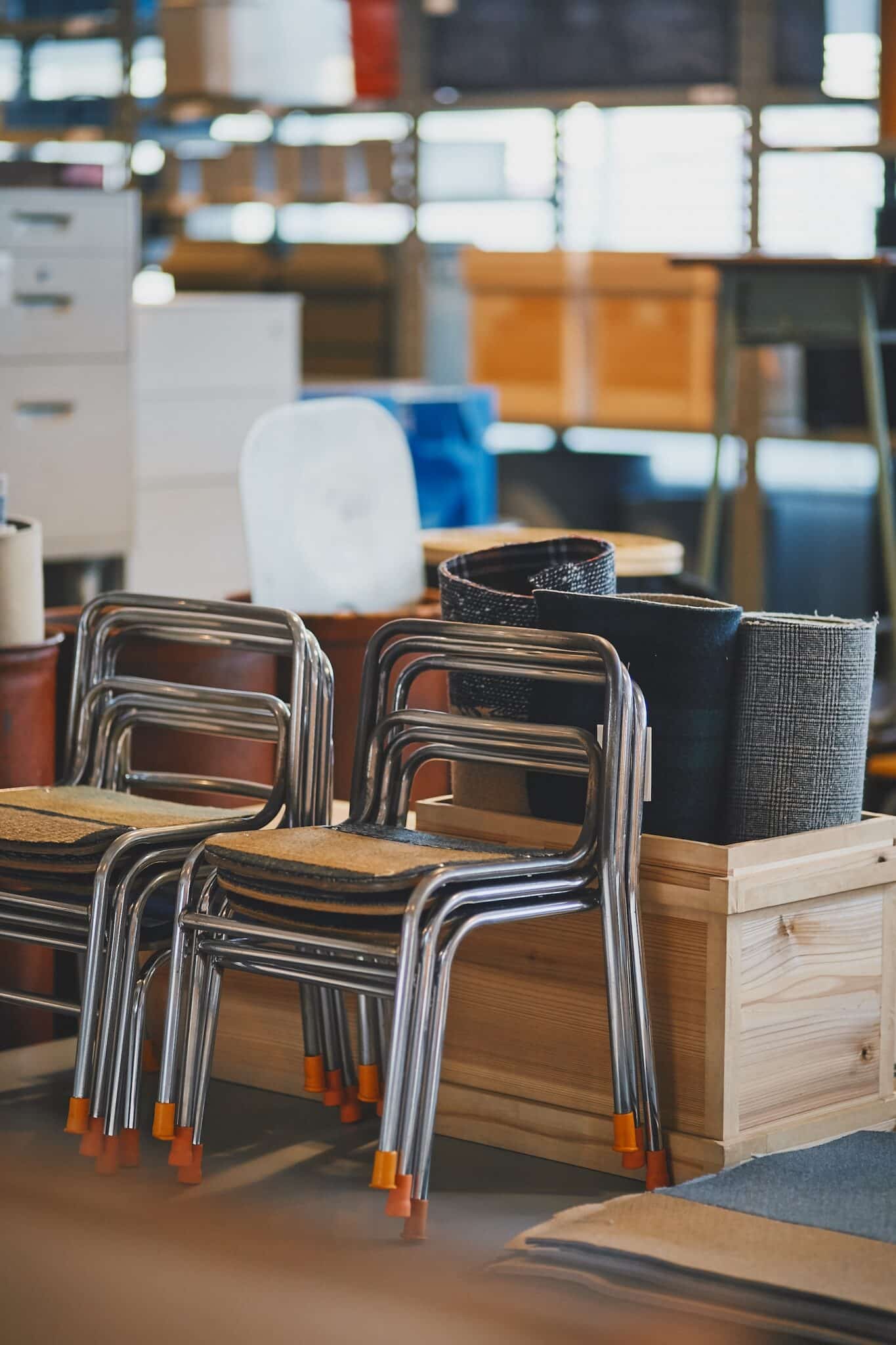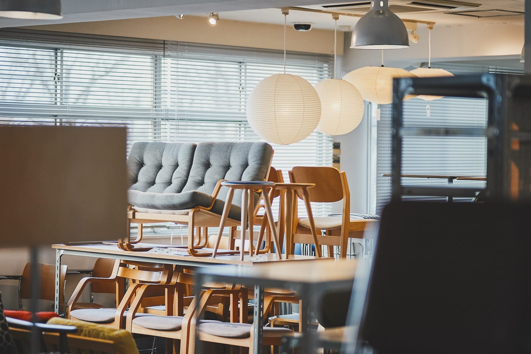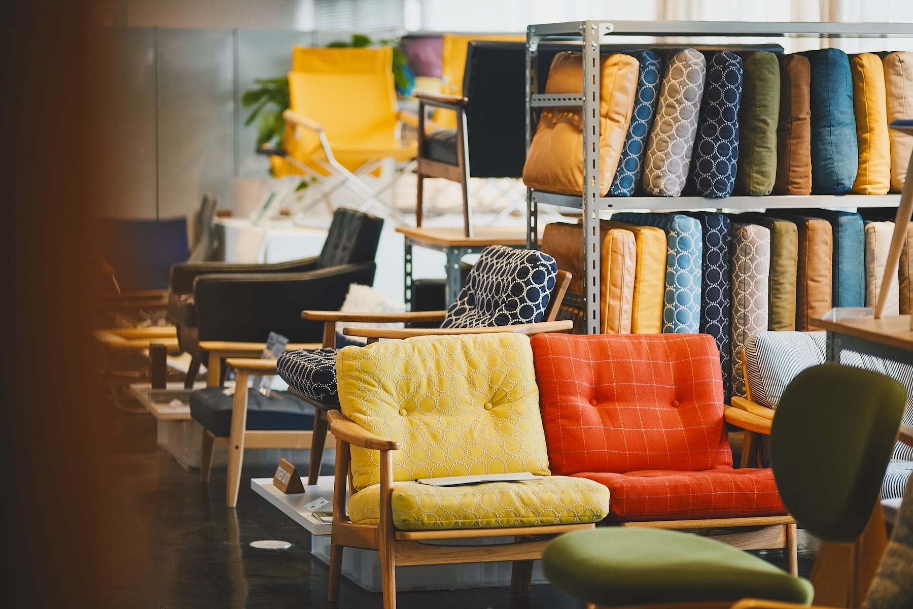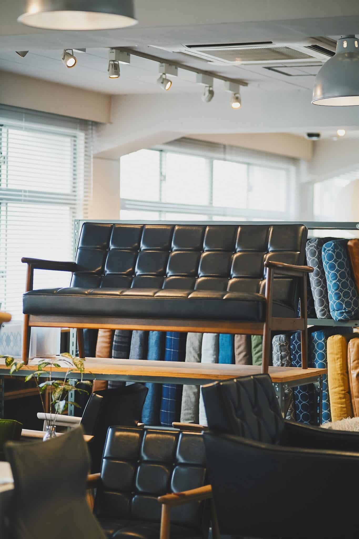 インテリアも充実。なかでも椅子のラインナップは幅広く、日本で長らく愛されているカリモクの Kチェアをはじめ、廃校になった学校から引き取った椅子といった昔懐かしいユーズドまで、さまざまにそろいます。