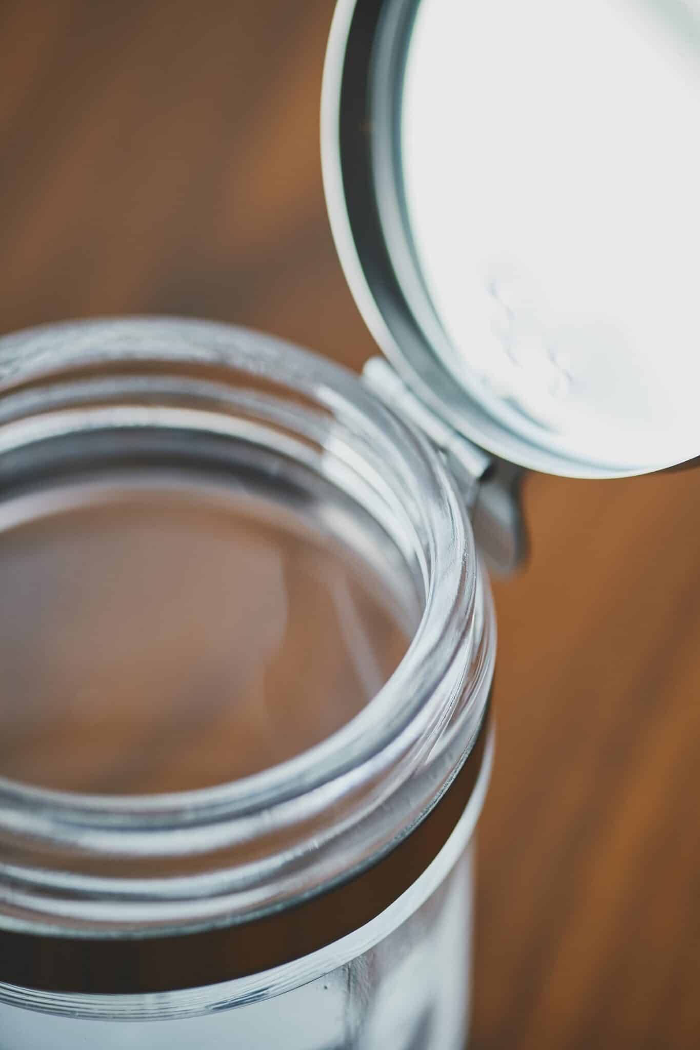 医療現場でガーゼ入れなどに使われている瓶も、小物や調味料を入れたり、ペン立てにしたりと、使いかたいろいろな万能アイテムです。指一本でパカっと開けられるため、出し入れするときに衛生面が気にならないのも特徴。