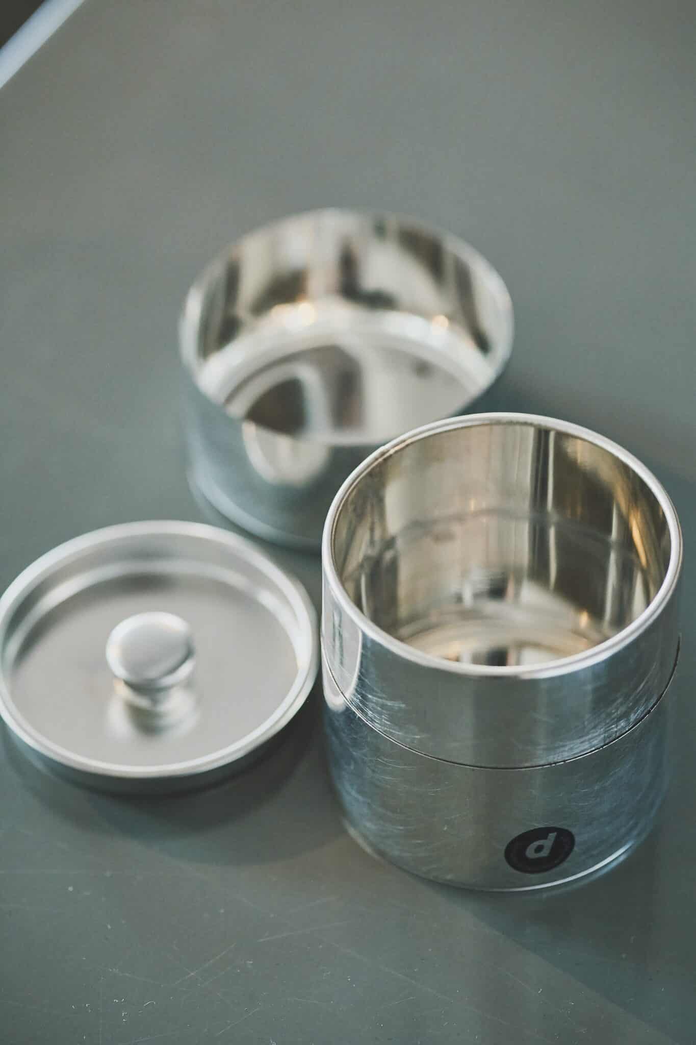 東京都江戸川区で、長年お茶缶を製作している町工場のブリキ缶。日本ではよく見かける和紙のかかったお茶缶を、職人技が感じられるようあえてそのままの姿で紹介しています。1枚の板を職人が一つ一つ加工してつくっており、ぴっちり密閉できる使用感は、その繊細な技術があってこそ。経年変化によってサビが出たりマットな質感に変化するなど、使うほどに味わいが出てくる楽しみも。