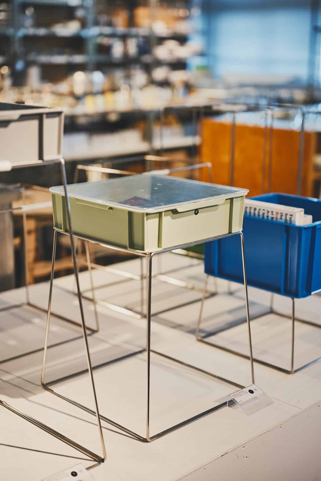 普段は商品輸送に使われている業務用のサンボックスは、単品はもちろんスタッキングも可能。「つくらないでつくる」をコンセプトに立ち上がったプロジェクトSampling Furnitureでは、変わらないデザインのサンボックスにフレームを組み合わせてプランター台として使うなど、暮らしに取り入れるアイデアを幅広く提案をしています。