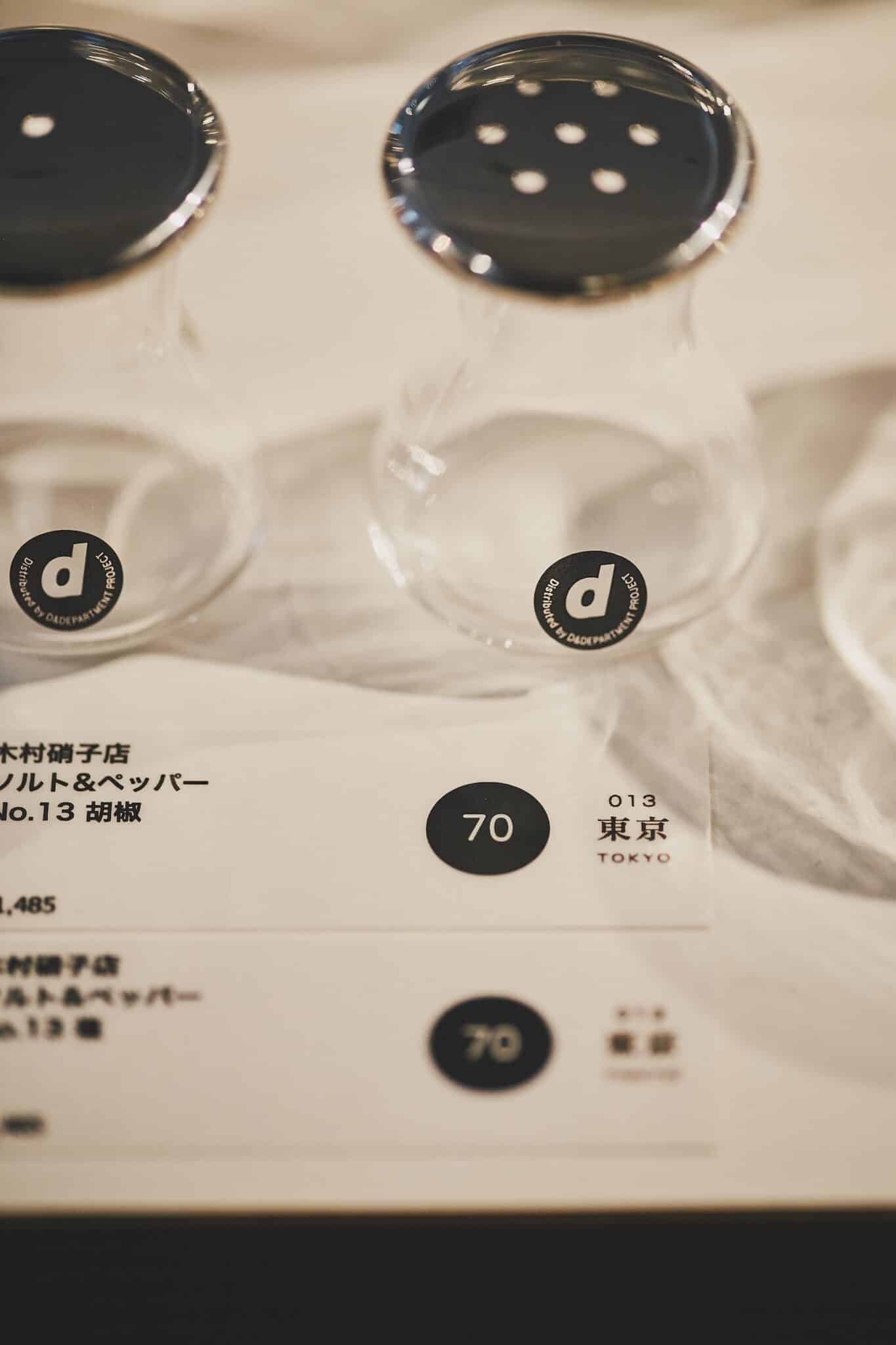 各商品のポップの背景色は、青は東京セレクト、グレーは海外製、白は国内の他県という振り分け。価格だけでなく、アイテムが生まれた年数と産地も表示し、一目で分かるよう工夫されています。アイテム一つひとつに敬意を表して、毎回専用のPOPを作っているとか。