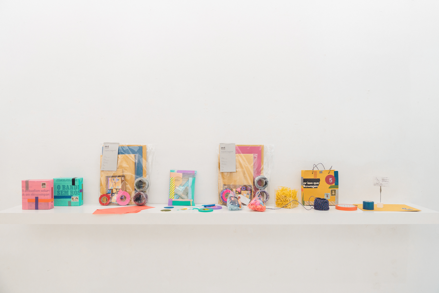 店名がラボということで、壁一面に並んだ試験管を彷彿とさせる筒にマスキングテープを陳列。また、店内のギャラリースペースでは、約3か月に一度のペースで企画展を開催しています。季節イベント向けのラッピング展示、クラフト作家や『mt』のマスキングテープを扱う雑貨店によるラッピングアイデア展示、さらには工業用テープそのものに焦点を当てた『カモ井加工紙』ならではの展示など、さまざまなテーマで展示をおこない、なかには企画展に合わせて限定商品を製造、販売することもあるとか。さらに、両面テープなのにあえてデザインを施したり、テープ表面への筆記性を高めたり、と、実験的な商品を店舗限定で販売し、売れ行き次第で定番商品化する例もあり、まさにラボとしての役割を体現するお店です。