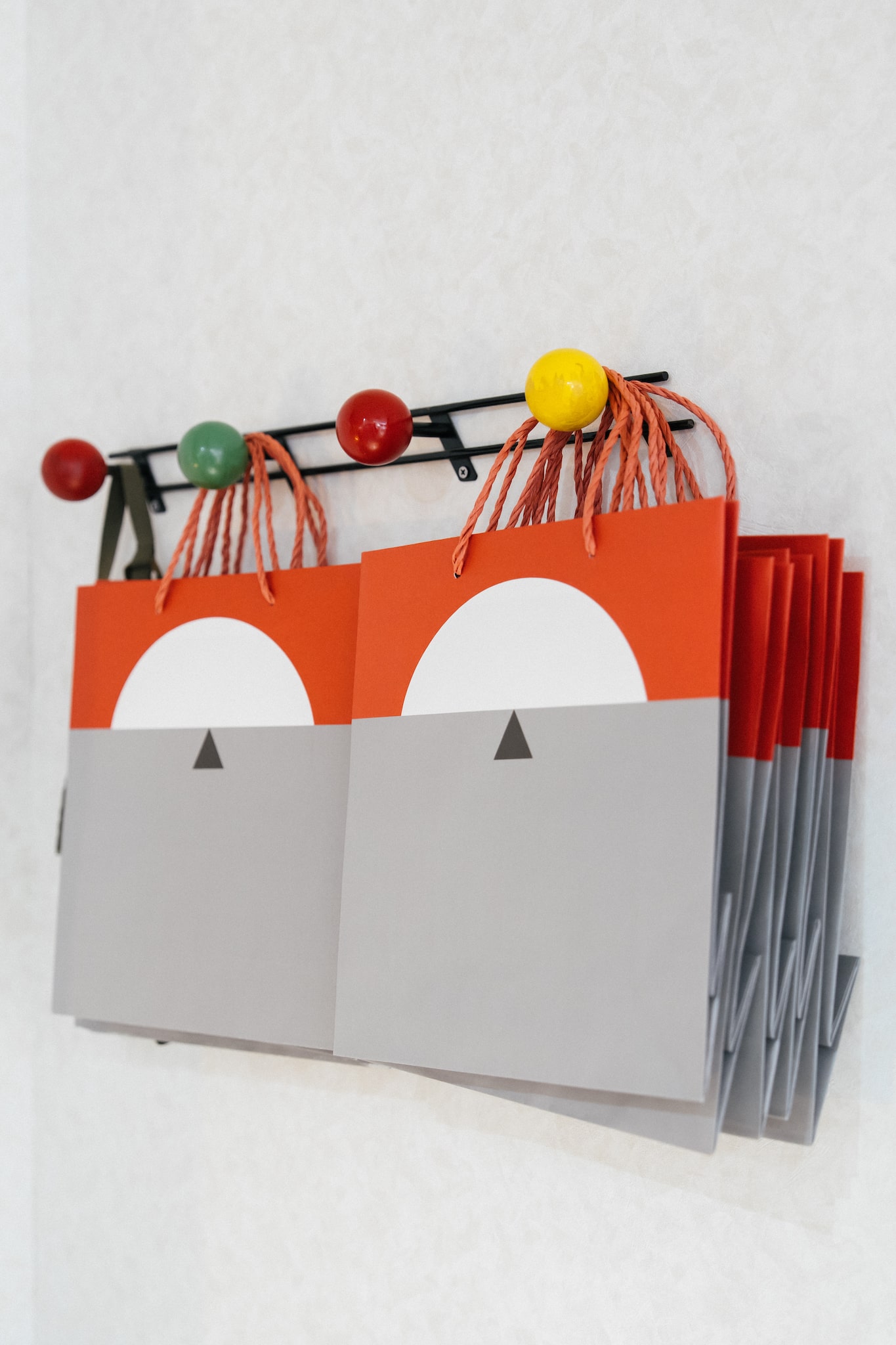 佳純さんがデザインを考えたお店のショッパー。クエンティン・タランティーノ監督作品の『デス・プルーフ』の広告ヴィジュアルからインスパイア。100円