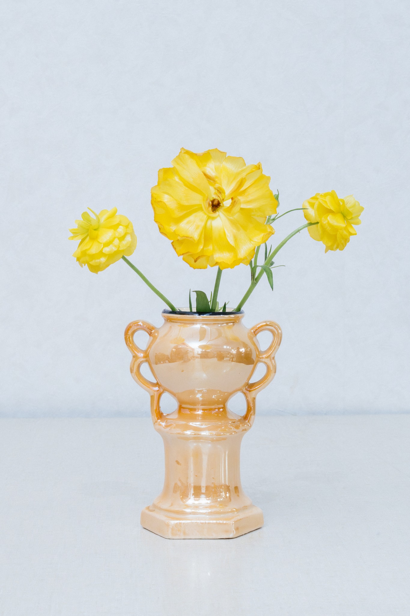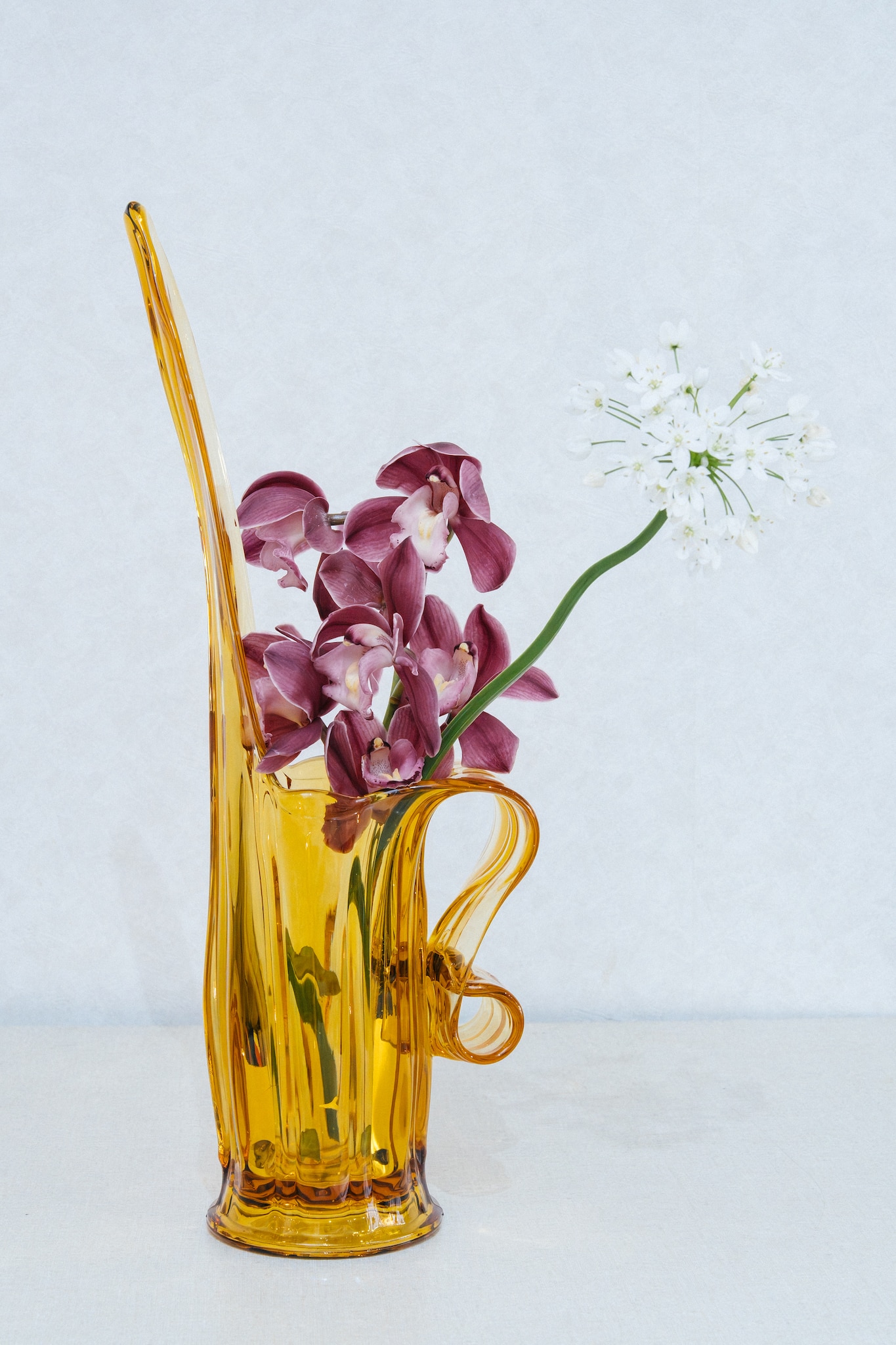 アール・デコ、ミッドセンチュリー、ポップアートなど、20世紀にアメリカやヨーロッパで流行したデザインを感じさせる花瓶がさまざま揃う『sowhat vintage』。そのひとつひとつにはまるで美術作品のような存在感が漂います。戦前の20~30年代に流行したアール・デコは、幾何学的で洗練されたデザインが特徴。戦後のミッドセンチュリーは造形美があり自然素材を生かしたデザイン、1950〜70年代のポップアートは大衆文化を取り入れたカラフルな表現が魅力です。