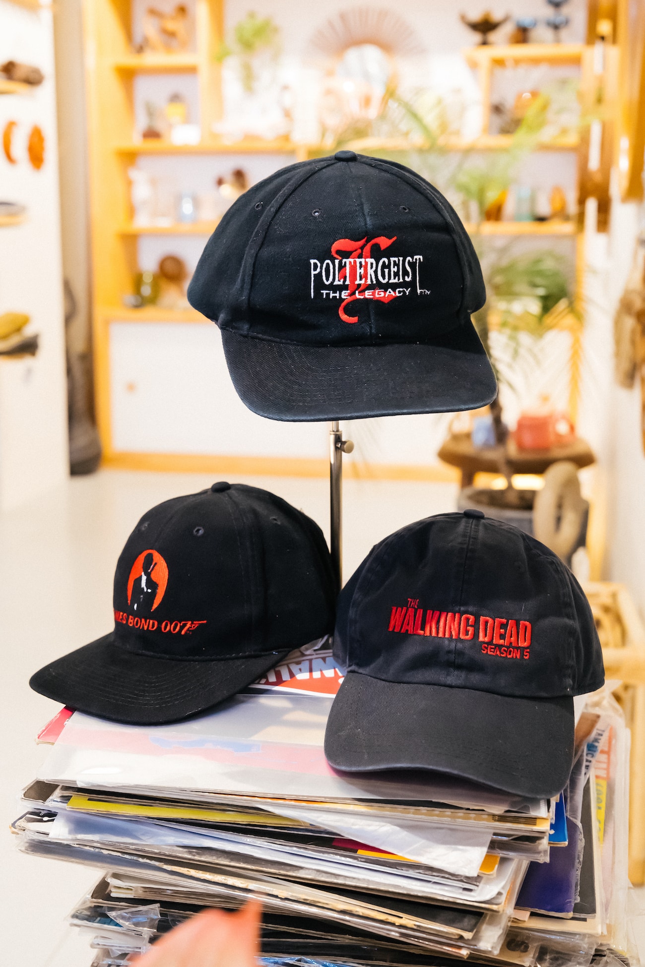 『sowhat vintage』には、ヴィンテージキャップやビーニーなど、カラーバリエーションも豊富な帽子が約600点も揃っています。中心となるのは、80~90年代のアメリカ製キャップ。企業プロモーションのためにつくられた企業ロゴキャップやトラック運転手が被っていたトラッカーキャップ、『ヤンキース』などのMLB公式のスポーツチームキャップ、『ポルターガイスト』などの映画制作のクルー用キャップなどが充実しています。