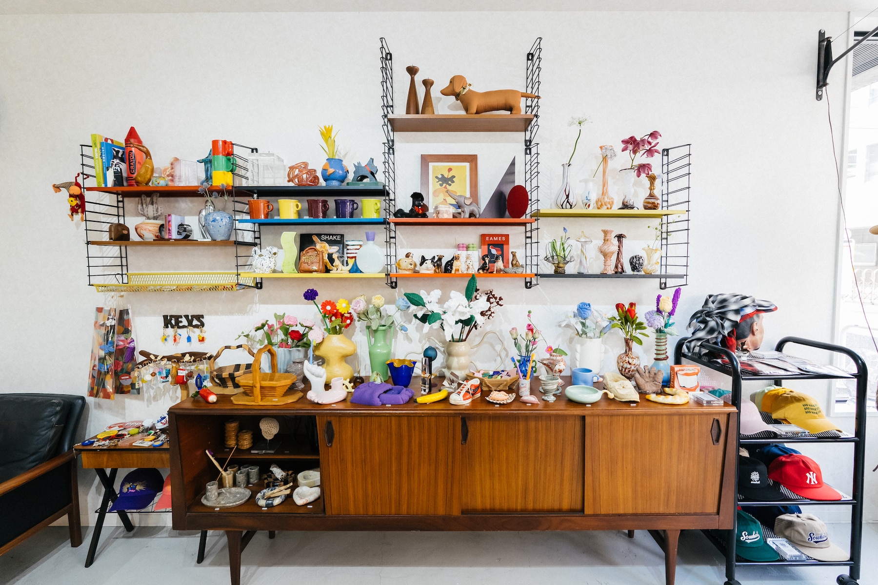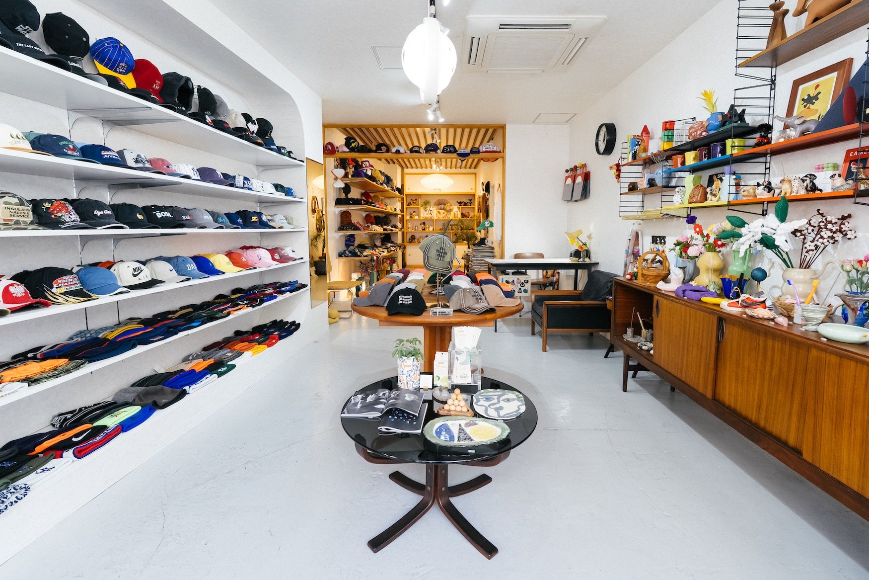 『sowhat vintage』は、帽子と花瓶だけを扱う個性的なヴィンテージショップ。古着店がひしめく下北沢のなかで、あえて服は扱わず、帽子と花瓶というラインナップで独自の存在感を放っています。まるでギャラリーのように商品が並ぶ洗練された店内には、約600点の80〜90年代アメリカ製キャップと、美術作品のような花瓶が約200点揃っています。装いと生活に、彩りと余白を与えてくれる一点ものアイテムに出会えます。