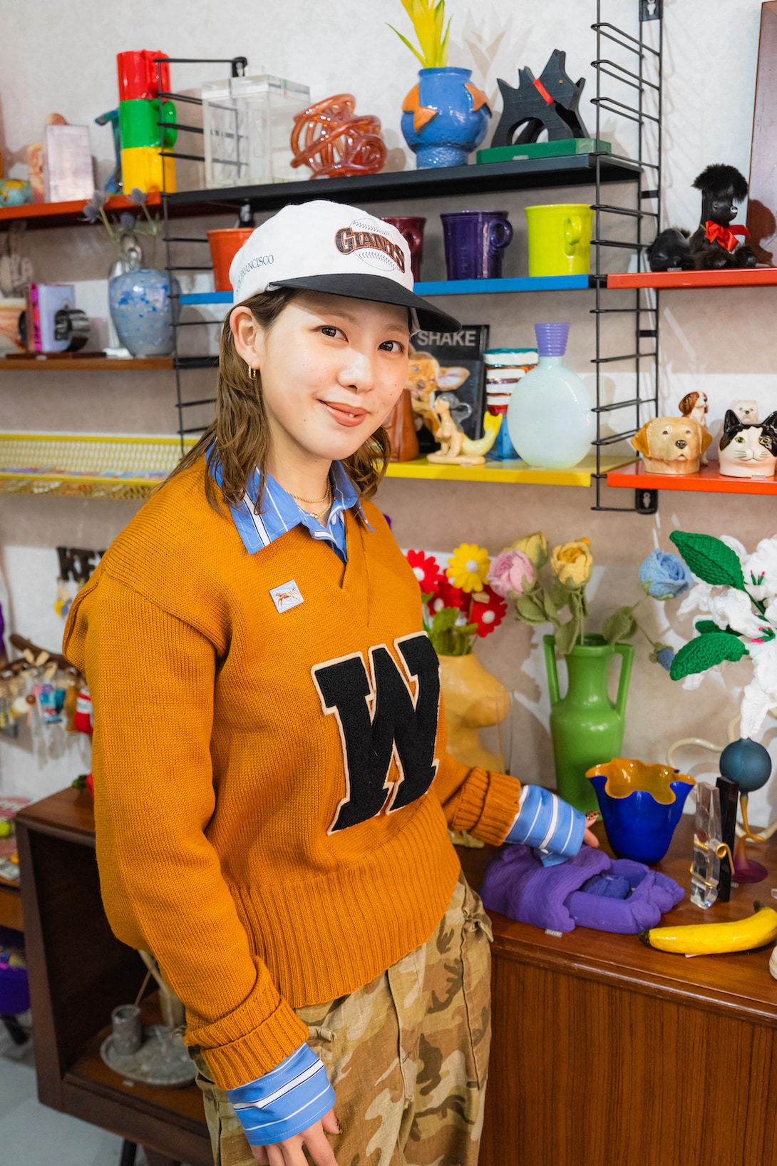『sowhat vintage』は、下北沢駅から徒歩3分、茶沢通り沿いにある帽子と花瓶をメインに扱う古着店です。オーナーは、下北沢の古着店で長年働いていた加藤太郎さん、佳純さん夫婦。店を始めた当初は服をメインに扱っていましたが、思うように売れず頭を悩ませていたところ、店名にある『what』の“w”を取ると“hat”になることに気づき、帽子をメインに扱うようになりました。さらに、佳純さんが「服に対する固定概念ができてしまい、新しいことを生み出せない」と感じ始めた頃、コロナ禍が重なり、家で花を飾るなかで花瓶を集めるようになりました。次第に、花瓶の奥深さに惹かれ、店で扱うことを決めました。